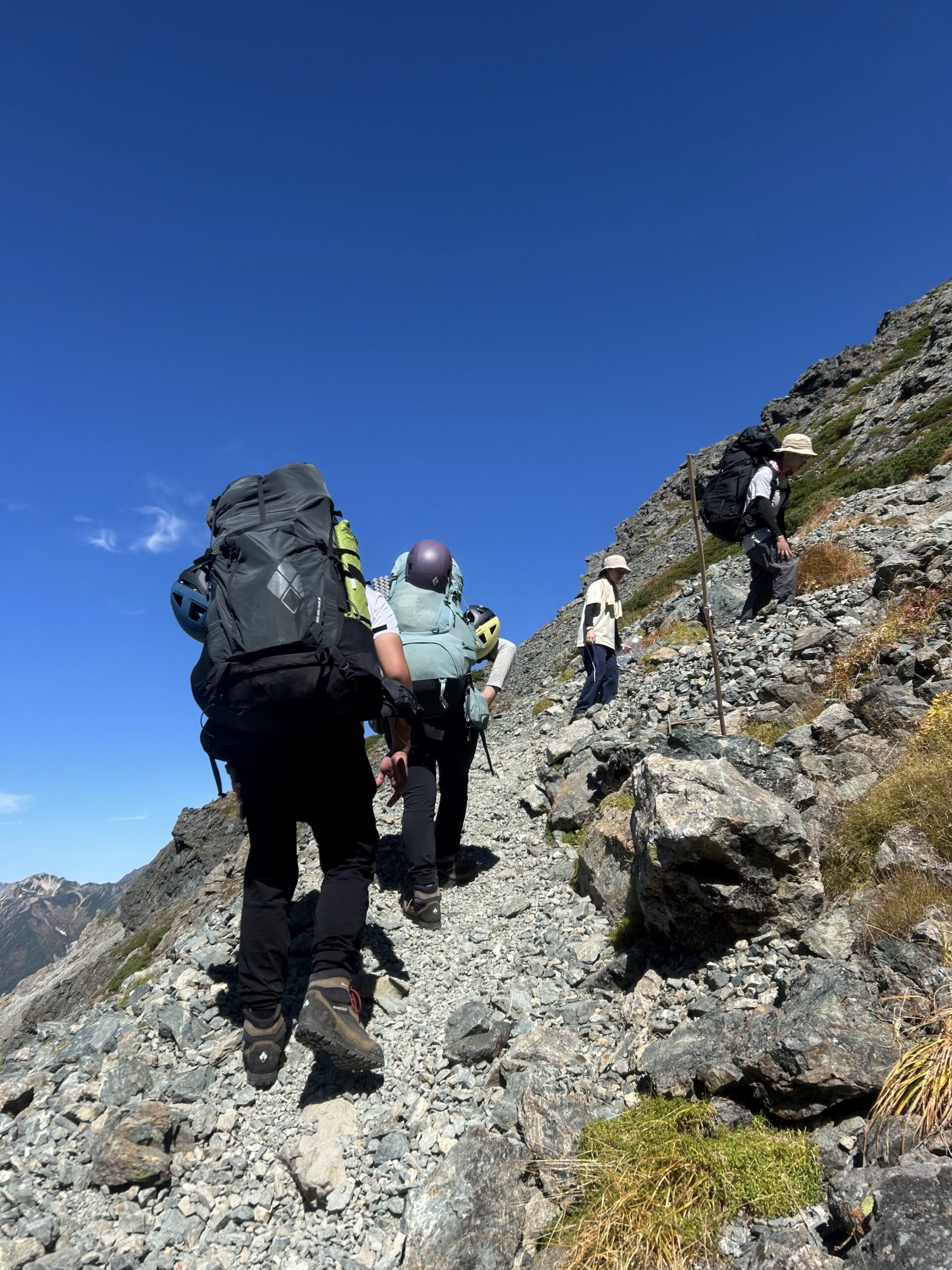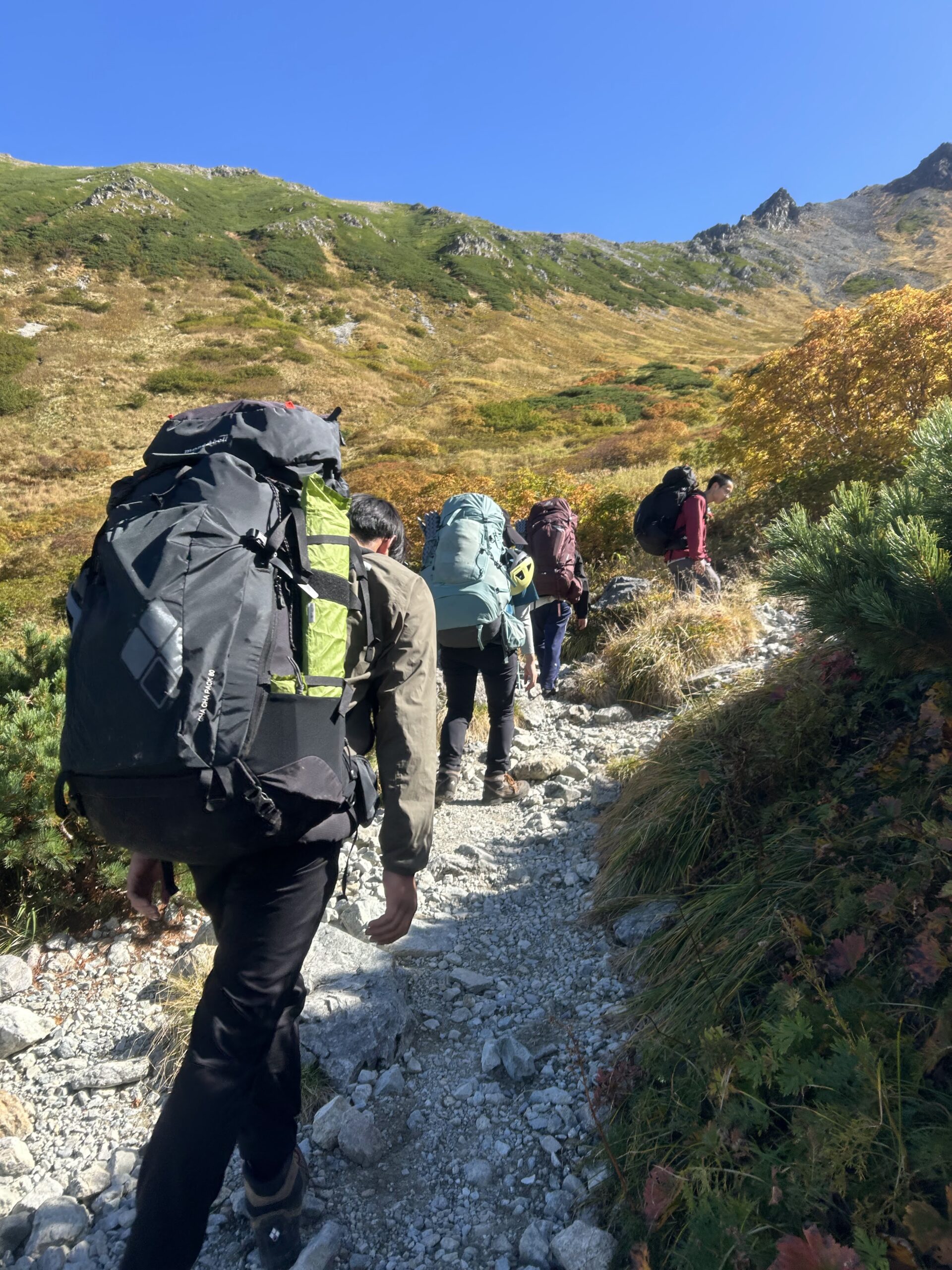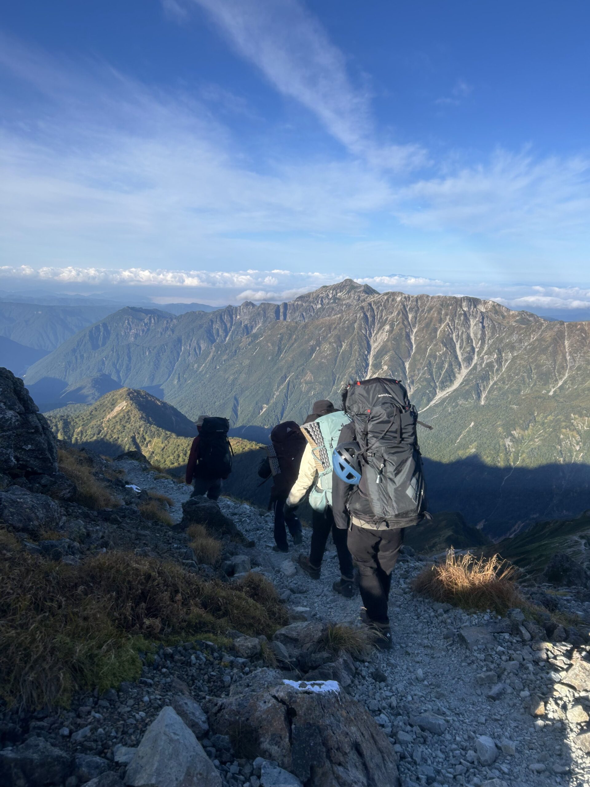自分の初めての本合宿で眺めた槍ヶ岳に、自分の最後の計画で登ることができて、思いがけず先輩方にも遭遇し、そして一緒に登ってくれた後輩たちの笑顔をたくさん見られて、本当に幸せな本合宿でした。関わってくださった皆さん本当にありがとうございました。