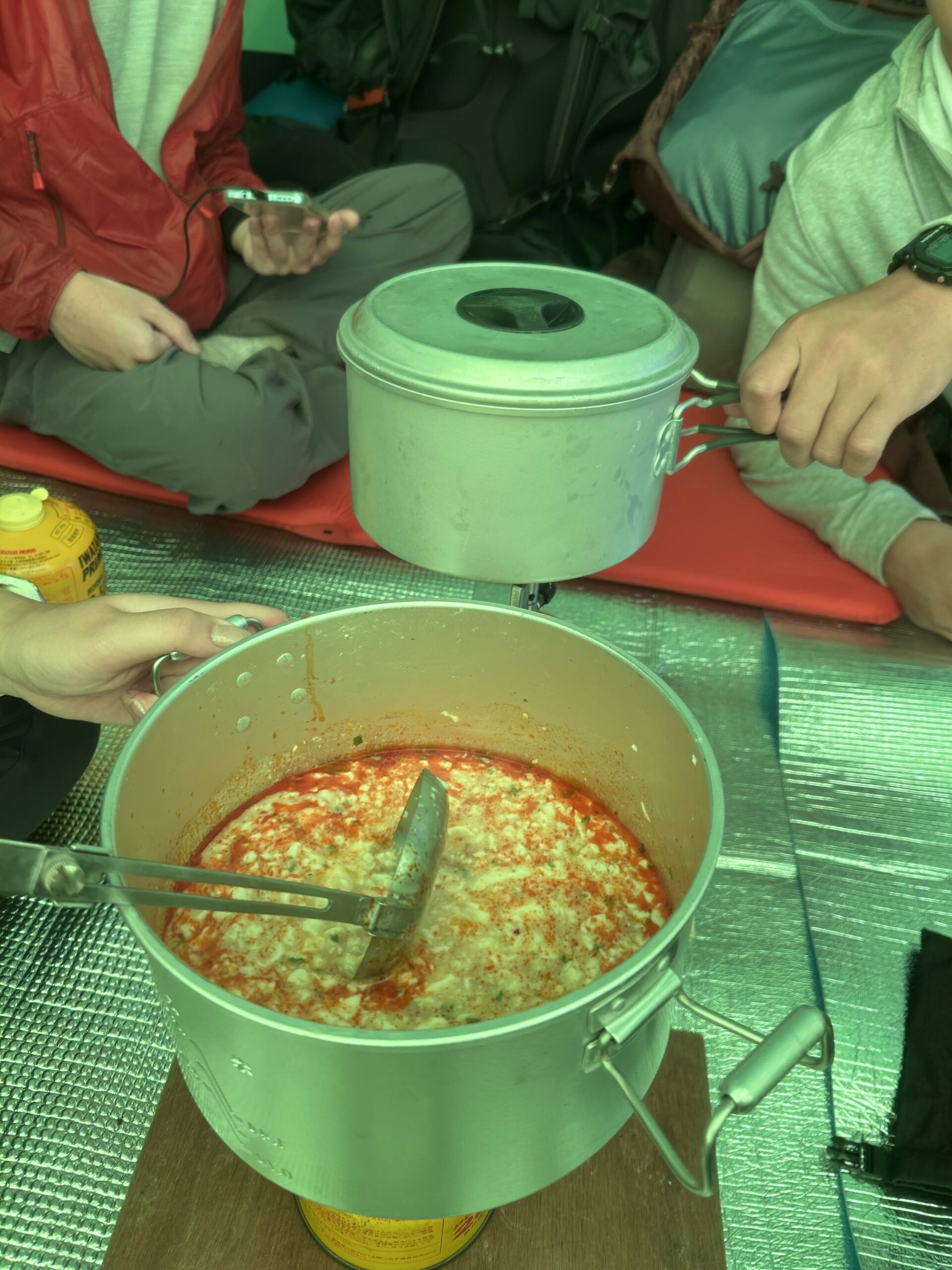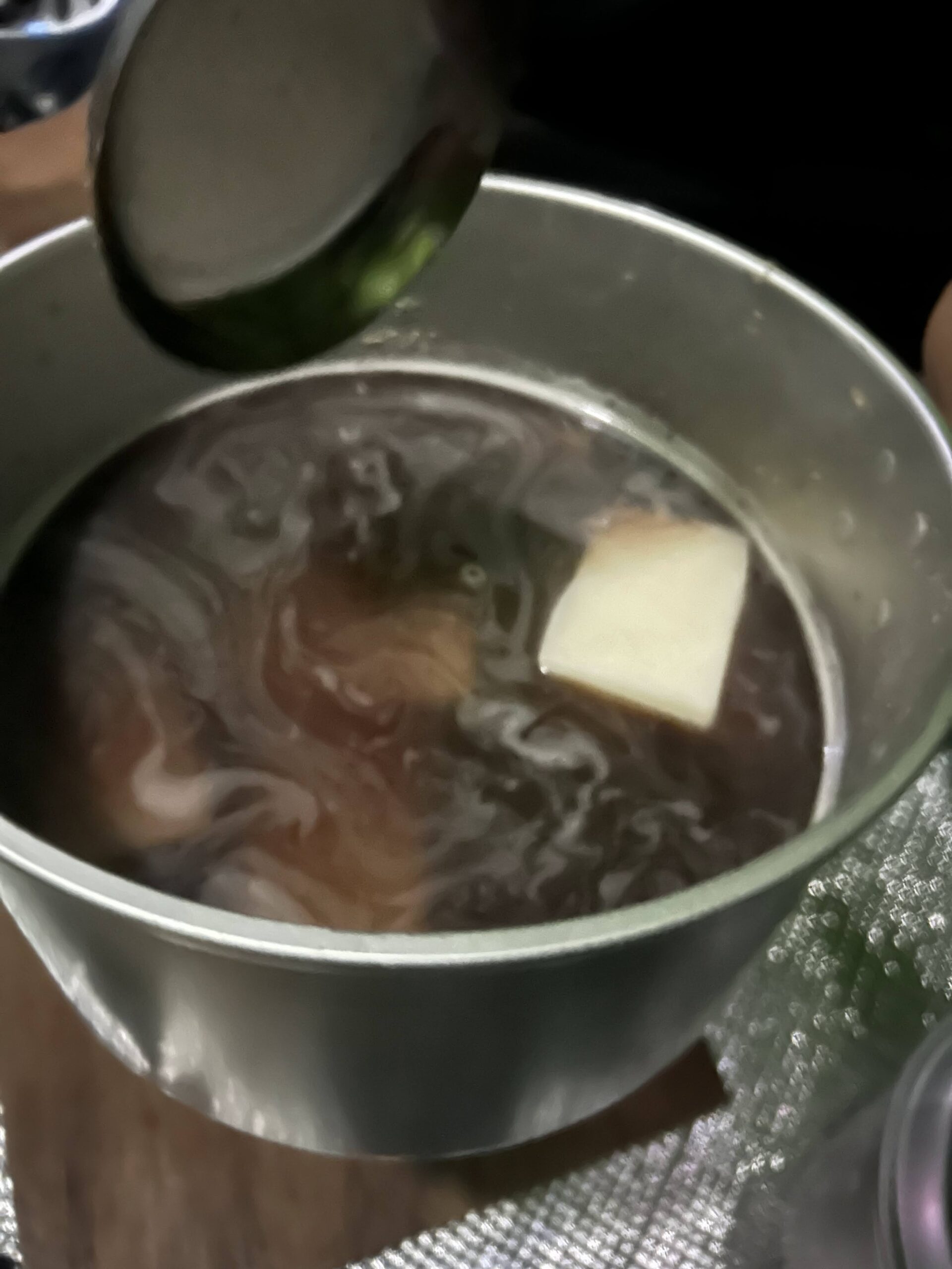 無事にテントに戻り、夕飯。今晩は麻婆豆腐。
