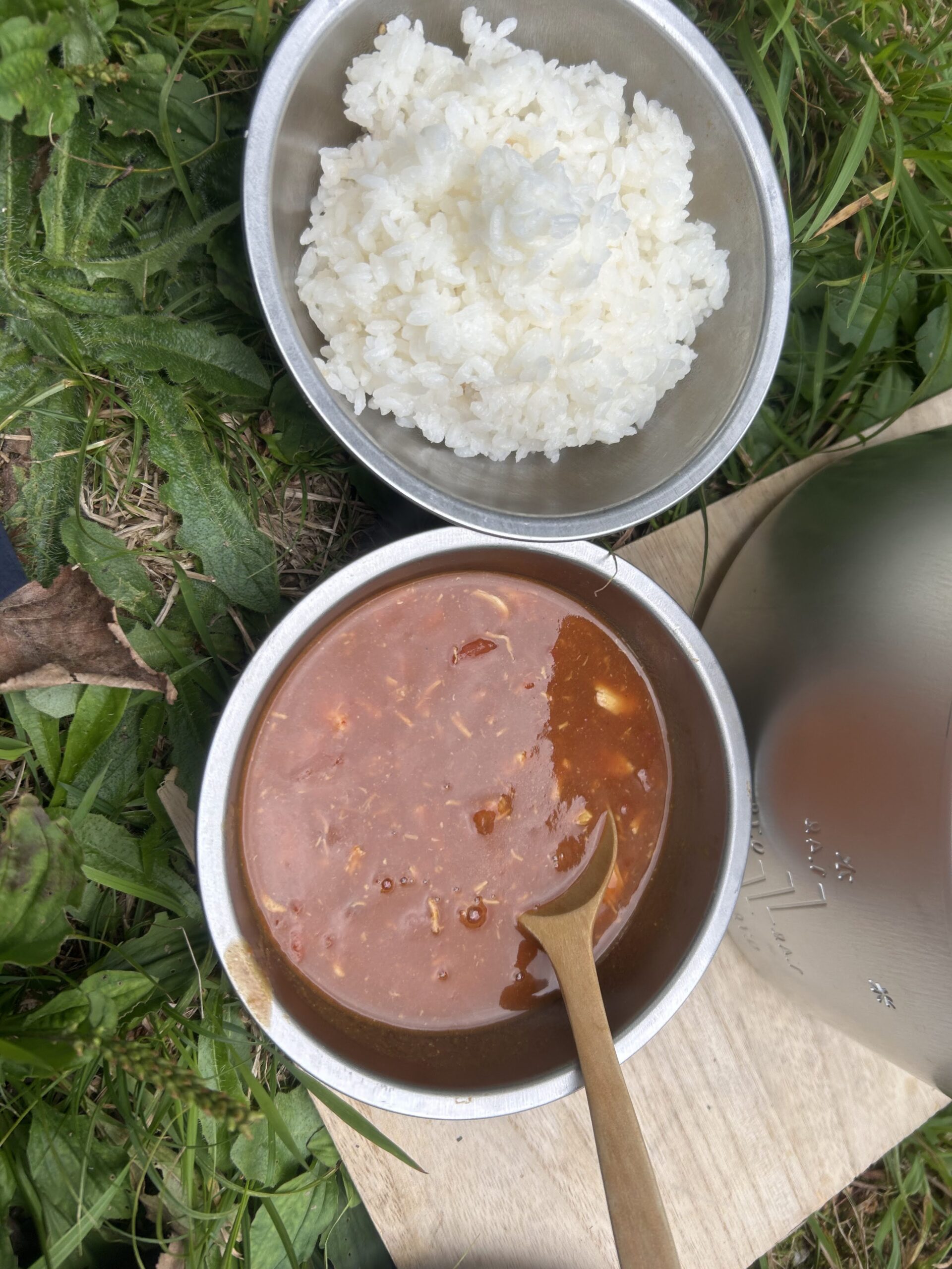 最後の夕飯、1男が頑張って運び続けたお米でカレーライス!